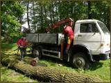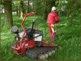 Eine ganz wichtige Komponente hierbei ist das "Eiserne Pferd", ein Minikettenfahrzeug mit einer 2,5t Seilwinde, dessen Bodendruck weniger als der des Menschen beträgt. Selbst mit schwerem Gerät sind wir in der Lage, ganze Gärten nur durch das Gartentor "abzuräumen". Dies geschieht durch einen Spezialschlepper mit einer funkferngesteuerten Seilwinde.